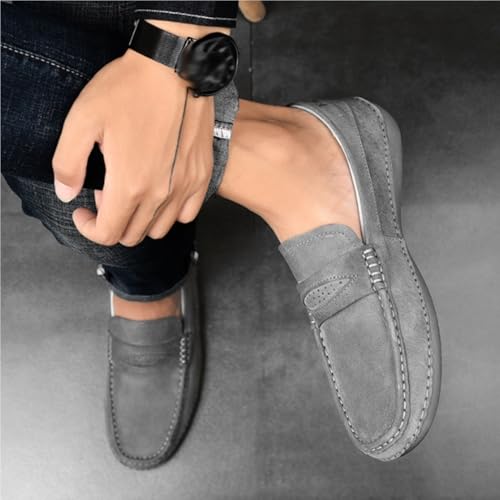 Round Toe Breathable Loafers Shoes Genuine Leather Stitching Details Suede Vamp Anti-Slip Slip Resistant Flat Heel Party Slip-on 5