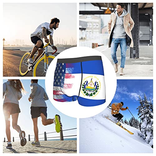 HOT ! Usa El Salvador Flag Mens Boxer Briefs Underwear Breathable Stretch Boxer Trunk with Pouch for Men, Youth