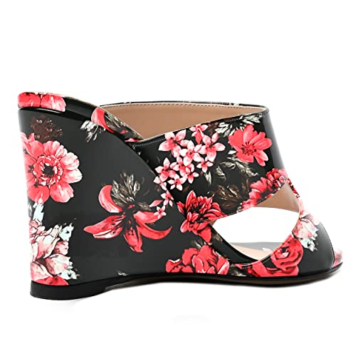 MERRORI Womens Patent Solid Party Sexy Open Toe Slip On Wedge High Heel Wedges Sandals 3.3 Inch 6