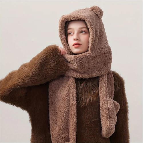 HOT ! 3D Bear Ear Winter Hat with Scarf - Fleece Lined Hooded Cap, Warm Kids Hat Scarf Set for Cold Weather