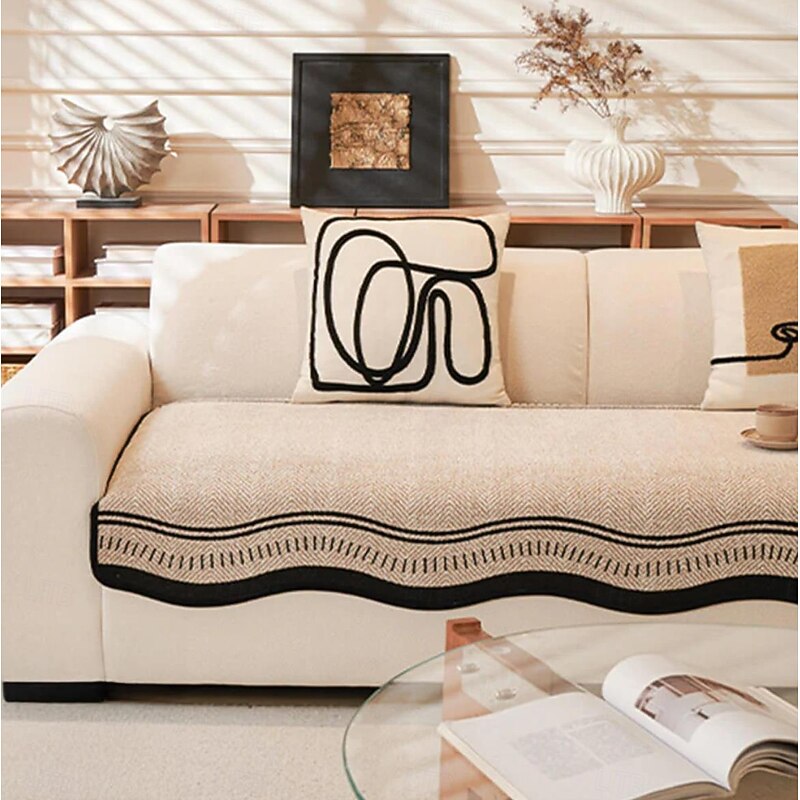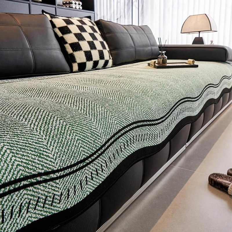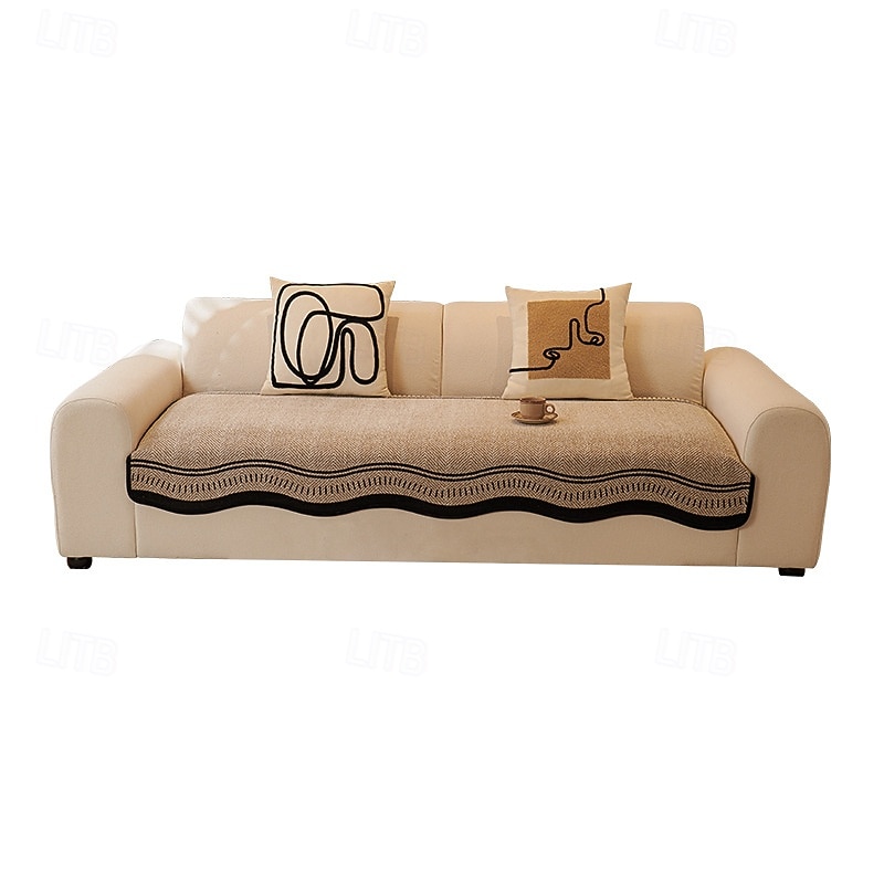 Non-Slip Sofa Cover Herringbone Chenille Couch Cover with Wavy Edges Pet Friendly 1