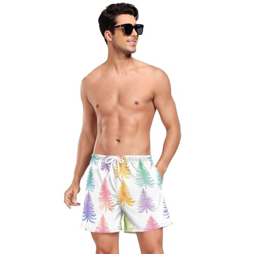 xigua Watercolor Pine Tree Mens Swim Trunks with Liner, 5 inch Quick Dry Mens Boardshorts for Beach 6