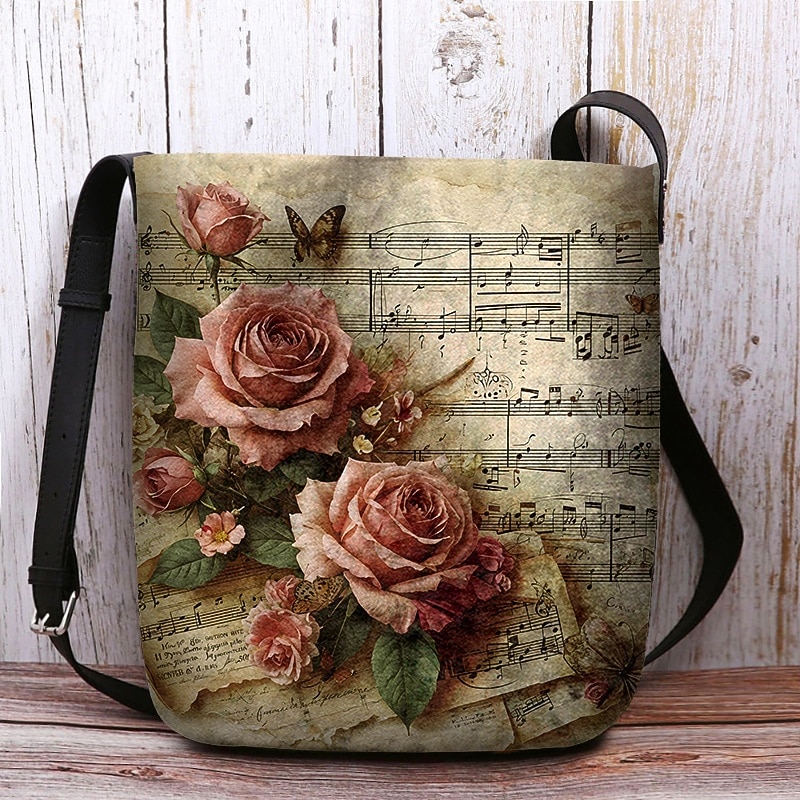 $24.99 - Vintage Floral Music Note Shoulder Bag for Women – Artistic Rose Print Crossbody Bag, Perfect for Casual Outings, Shopping and Everyday Use 2025. Shop for cheap Crossbody Bags online? Buy at lightinthebox.com on sale today!