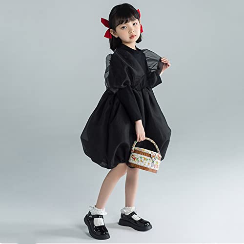 Girls Summer Skirt Dress Fashion Puffy Sleeve Chiffon Black Long Sleeve Princess Dress Birthday Gift Dresses 6