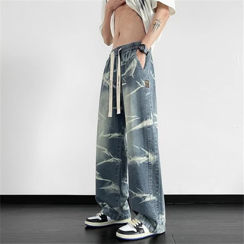 HOT ! Men Street Tie Dye Design Trousers Neutral Loose Pocket Wide Leg Washing Jean Pants