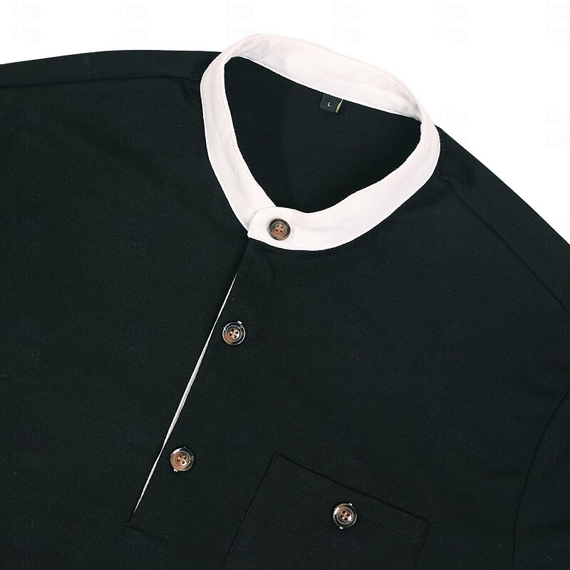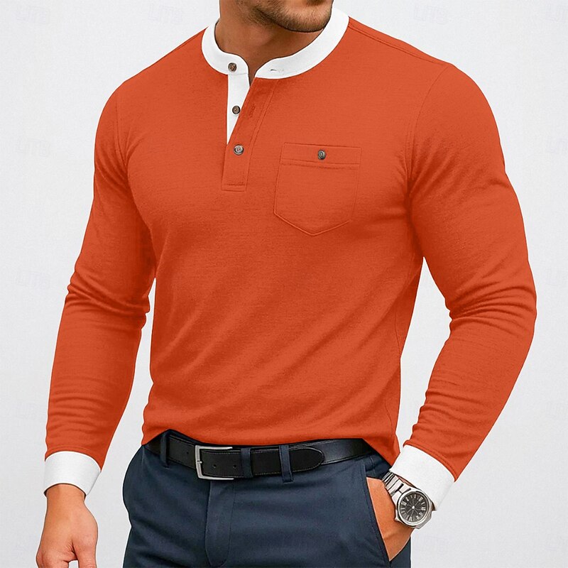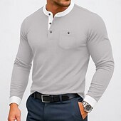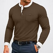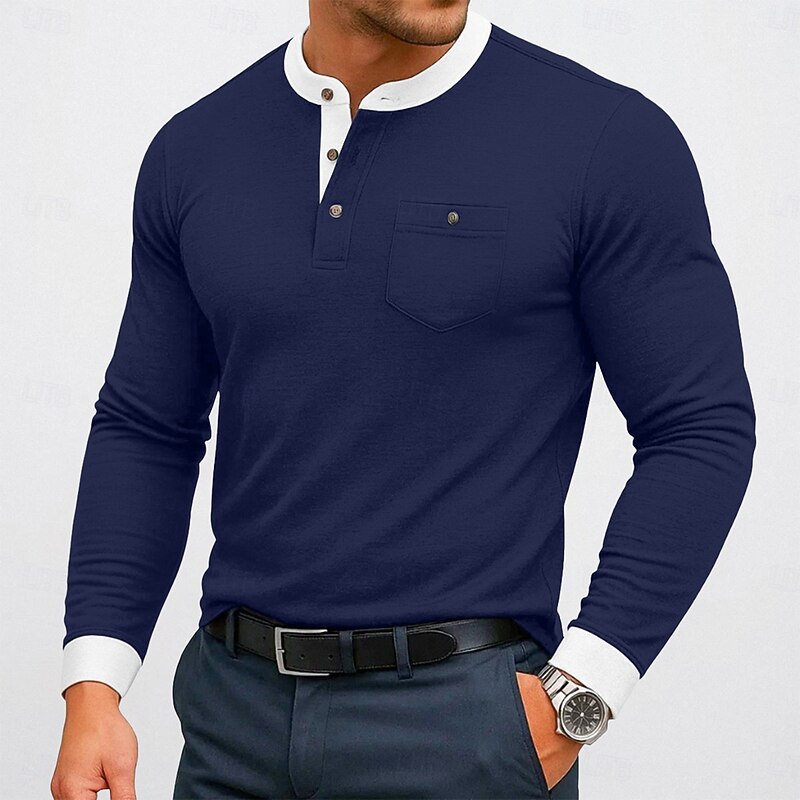 More information about Men's Henley Shirt Tee Top Cotton Blend T-Shirt Long Sleeve Color Block Solid Fashion Designer Basic Patchwork Stand Collar Henley Vacation Street Casual Spring & Fall All Seasons Black Navy Blue
