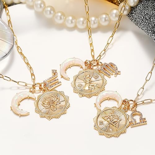 MISS RIGHT Gold Zodiac Sign Coin Necklace with Opal Crescent Moon Charm for Women Trendy, Dainty Gold Paperclip Chain 12 Constellation Horoscope Necklaces Astrology Jewelry Gifts 5