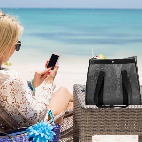 Mesh Beach Bag, Large Mesh Reusable Tote, Breathable Quick-Dry Design, Foldable and Lightweight, Ideal for Vacation, Camping, 6