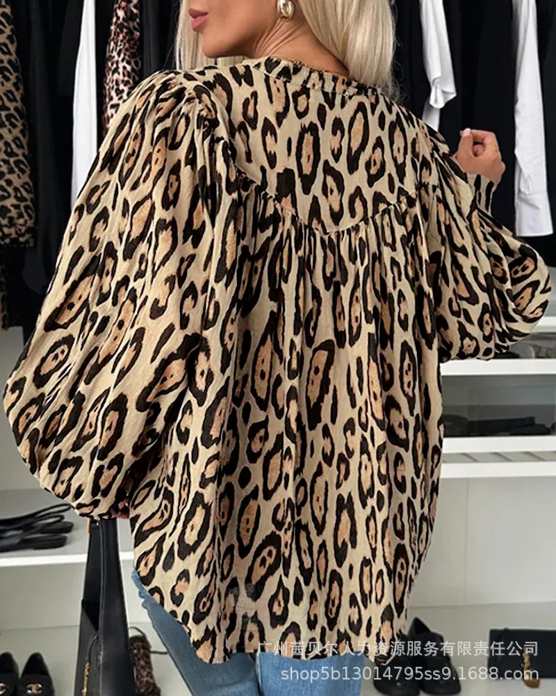 Women Leopard Print Blouse Full Sleeve Casual Loose Elegant Shirt. S-XL