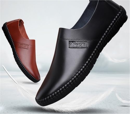 Mens Loafers Shoe Genuine Leather Round Toe Soft Breathable Slip Resistant Flat Heel Comfortable Classic Fashion Slip-ons 5