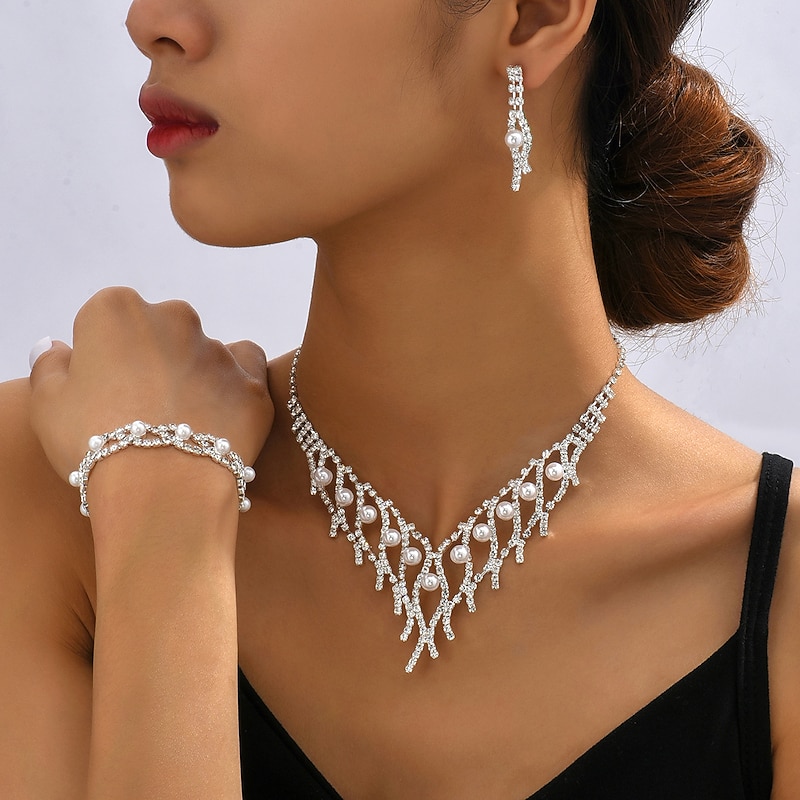 More information about Bridal Jewelry Sets 1 set Imitation Pearl Imitation Diamond 1 Necklace 1 Bracelet Earrings Women's Elegant European Tassel Fringe Jewelry Set For Wedding Anniversary Party Evening