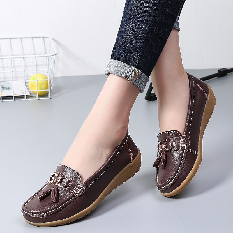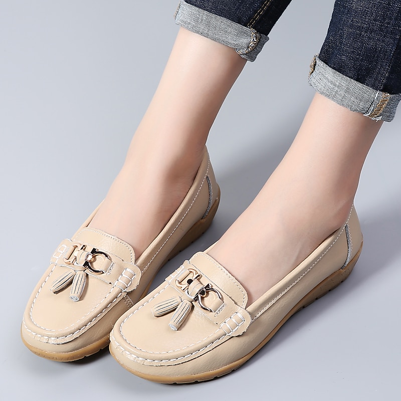 Highlights [Fabric] : Made from premium faux leather and PU, these loafers offer a soft and flexible experience, perfect for daily wear and long-lasting comfort. The material selection ensures durability while maintaining a chic, modern look. [Cut] : Designed with a flat heel and a square toe, these loafers embrace minimalism and casual elegance. The slip-on style ensures convenience and a snug fit, making them ideal for women who are always on the go. [Design Highlights] : These loafers are adorned with decorative tassels and gold-tone hardware, adding a touch of sophistication and elegance. The shoes feature a classic moccasin toe and a solid color pattern, making them versatile for various outfits. The flexible TPR sole provides excellent grip and stability. [Occasions] : Suitable for a range of occasions such as daily wear, work environments, and leisurely walks, these loafers effortlessly combine style with practicality. Whether for a casual outing or a semi-formal event, they adapt well to your lifestyle needs. [Size] : Available in a broad range of sizes, from US6 / EU36 / UK4 to US10.5 / EU42 / UK8.5, these loafers cater to diverse foot sizes, ensuring a comfortable and perfect fit for everyone.