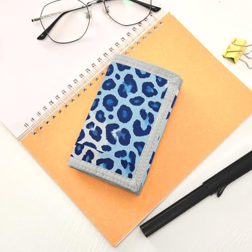 Cheetah Fur Skin Blue trifold trifold wallet for men for birthday gift minimalistic colorful holder with money clip with lanyard billetera para hombre 1