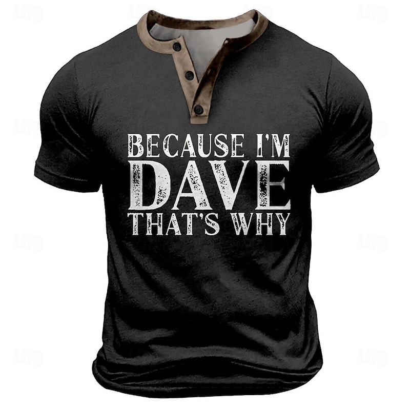 Men's T-Shirt with "Because I'm Dave That's Why" Funny Graphic, Henley Short Sleeve Lifestyle Design 12