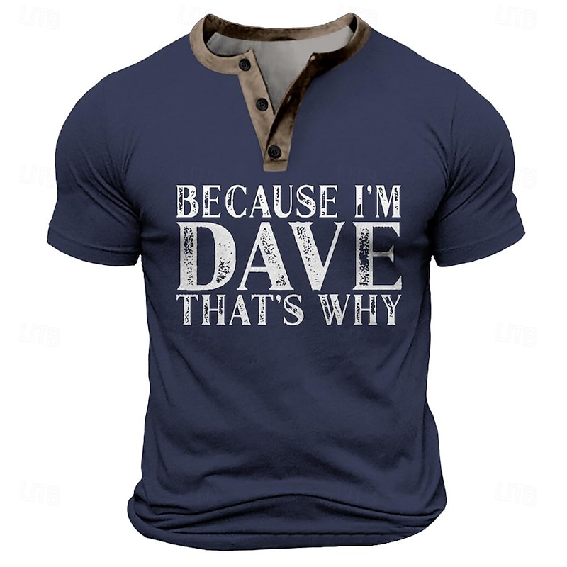 Men's T-Shirt with "Because I'm Dave That's Why" Funny Graphic, Henley Short Sleeve Lifestyle Design 14
