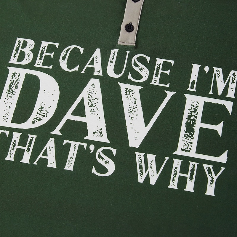 Men's T-Shirt with "Because I'm Dave That's Why" Funny Graphic, Henley Short Sleeve Lifestyle Design 1