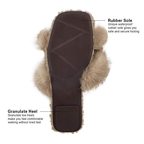 • 【COMFORTABLE】:The soft faux fluffy rabbit fur and lambswool, wraps your feet for warmth and comfort. Eco-friendly thick plush fleece and breathable fur keeps away from coldness and give you a soft and dry touch.