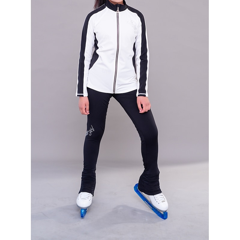 HOT ! Figure Skating Fleece Jacket Figure Skating Pants Figure Skating Jacket with Pants Women's Girls' Ice Skating Jacket Tights Outfits Black White Patchwork Thumbhole Spandex Stretchy Training Practice