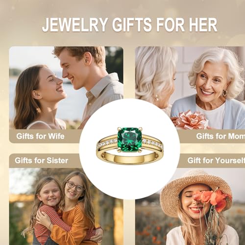 HOT ! Cushion-Cut Engagement Ring 1-3 ct lab grown Emerald Solitaire Green Ring Solid 10k 14k 18k Gold Wedding Band Womens Engraved Promise Birthday for Women Wife