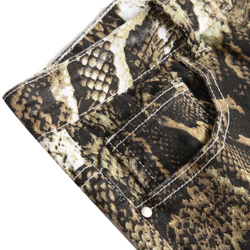 XYGJZ Men's Snake Printed Stretch Skinny Jeans Slim Fit Straight Leg Denim Pants 7