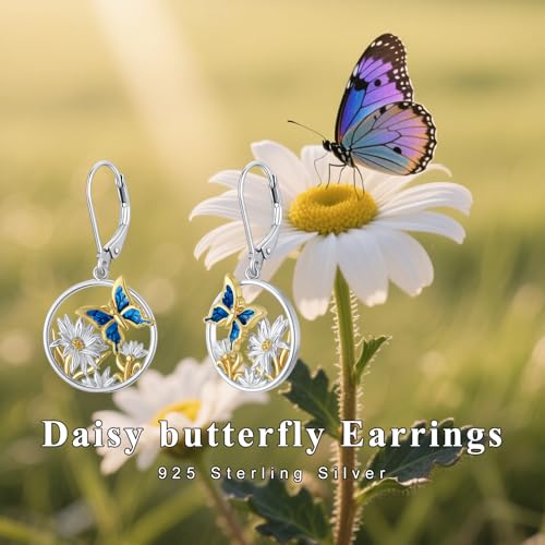 Dorunmo Butterfly Earrings for Women 925 Sterling Silver Daisy Flower Dangle Drop Leverback Earrings Butterfly Jewelry Gifts for Women 6