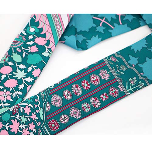 Skinny Scarf Simple Floral Print Necktie Handbag Handle Wrap Silk Ribbon for Women 5