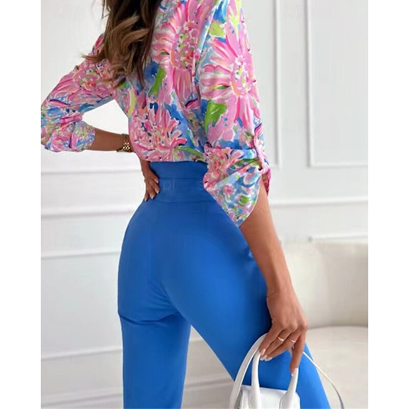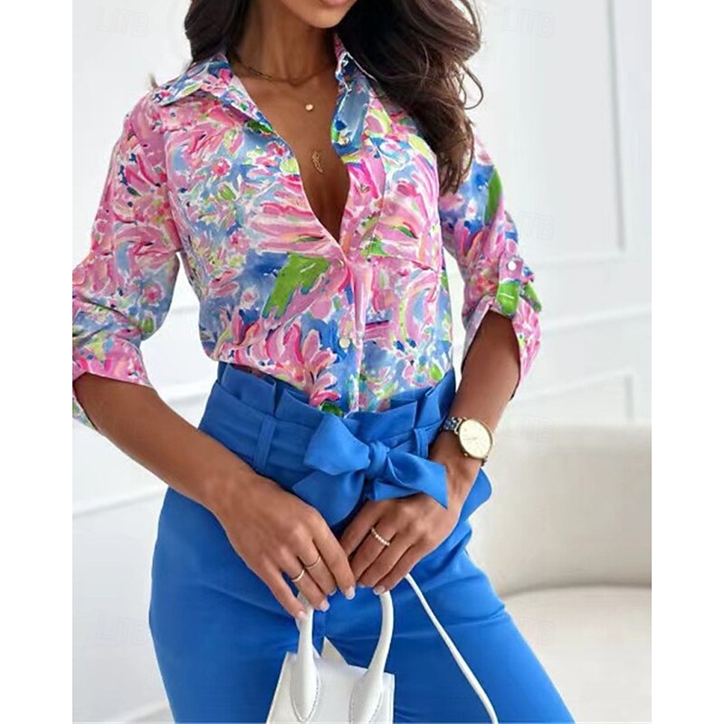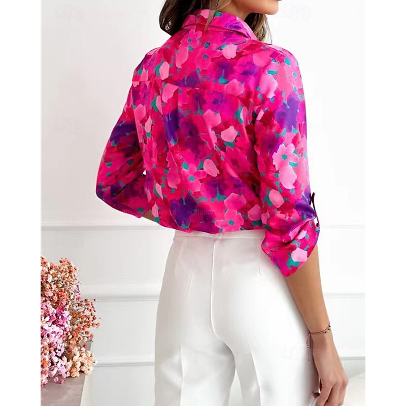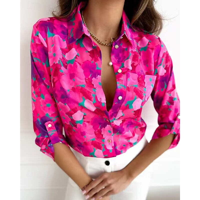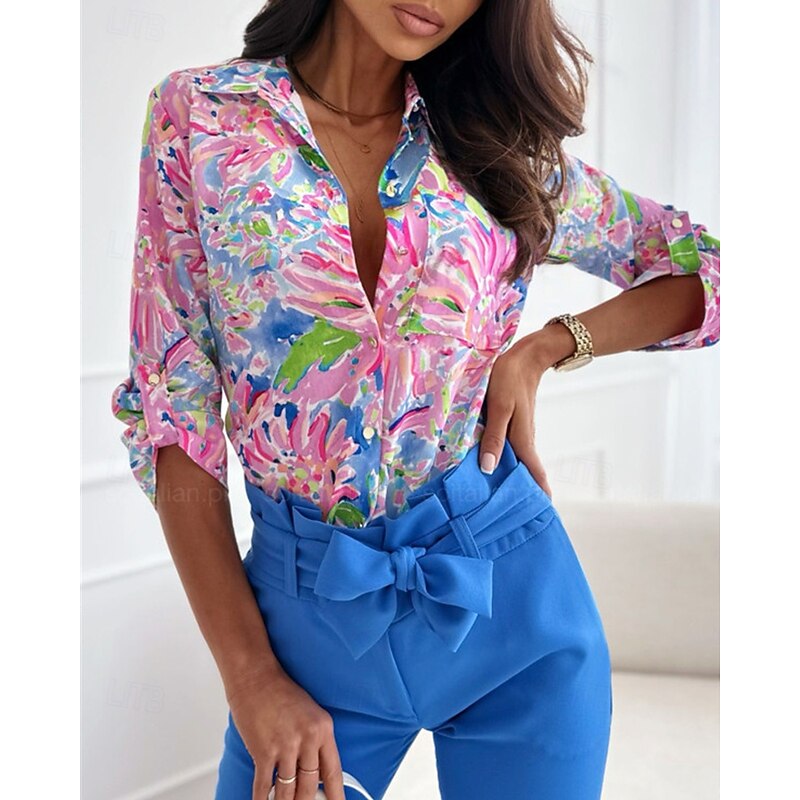 More information about Women's Shirt Floral Daily Stylish Basic Long Sleeve Shirt Collar Regular Tops Work Daily Holiday Buttons Print Pink Blue Rose Pink Spring Fall