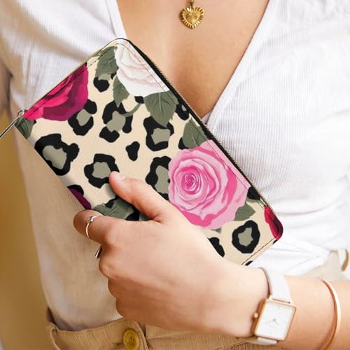 Women's Travel Zipper Purse Fashion Design, Huge Storage Capacity Purse, Cute Decor Wallet, Long PU Wallet Animal Rose Flowers Cheetah Leopard Print Floral 5