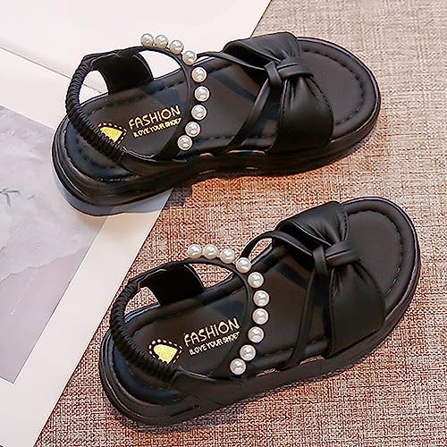 Toddler Girl Sandals Open Toe Cute Bow Princess Girls Flat Shoes Glitter Summer Dress Shoes Sandals with Elastic Strap 6