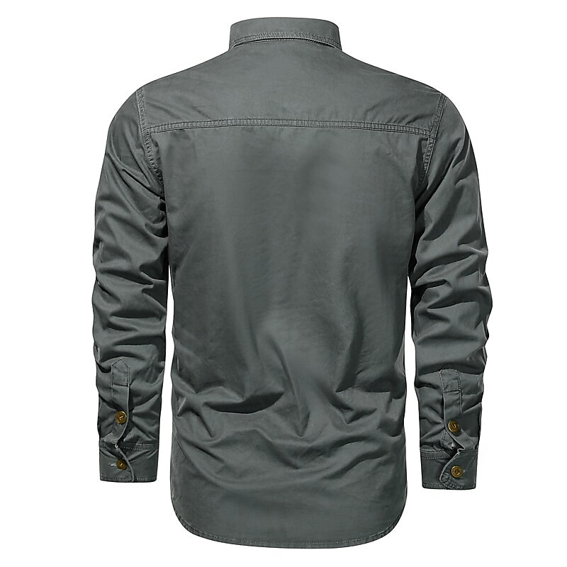 More information about Men's Shirt Workwear Shirts Work Shirt Button Up Shirt Cargo Shirt Black Army Green Khaki Beige Long Sleeve Plain Solid Colored Collar Daily Clothing Apparel 100% Cotton Basic