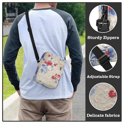 Red and Blue Flowers messenger bag Crossbody Small Bag For Women Womens Cross Body Purse Bags Adjustable Strap for business Shopping 5