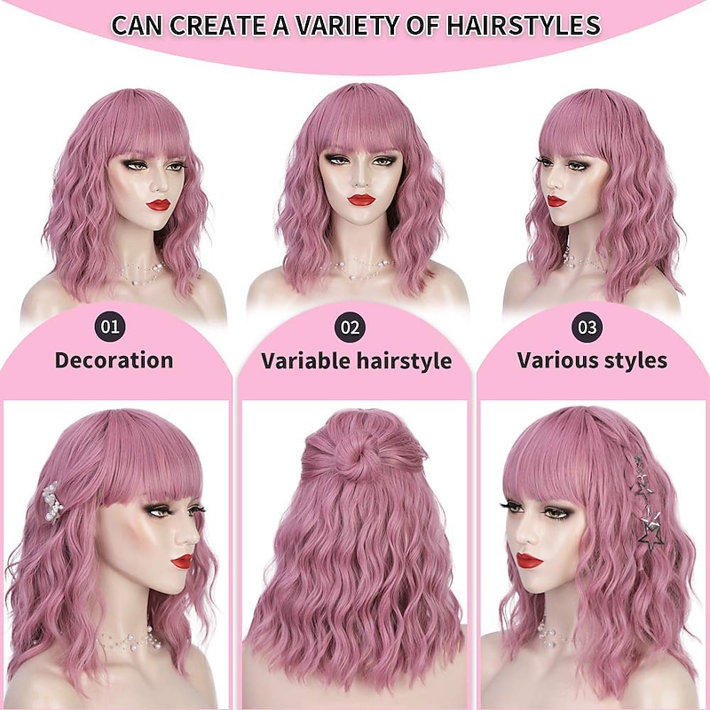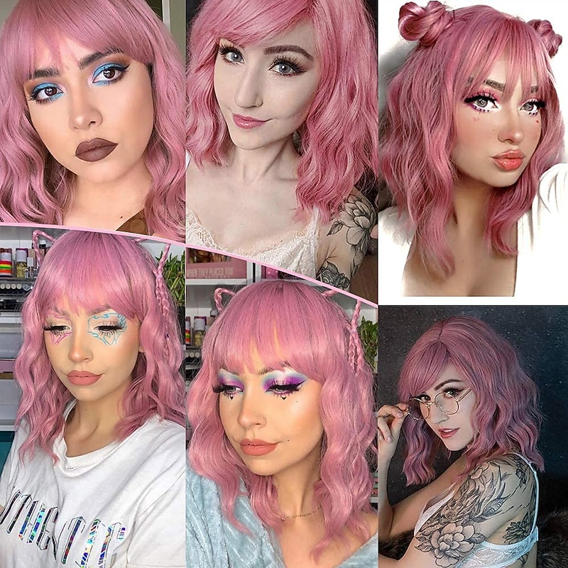 $20.99 - Short Wavy Pink Wig with Bangs Women Short Pink Bob Curly Wig with Bangs Pastel Wavy Wig for Women Shoulder Length Synthetic Wig Colorful Wigs Cosplay Wig Halloween Wigs 2025. Shop for cheap Party Wigs online? Buy at lightinthebox.com on sale today!