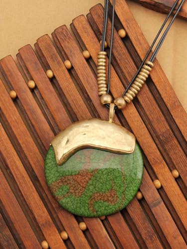 HOT ! GelConnie Leather Necklace for Women Large Pendant Long Brown Necklace Circle Leather Choker Vintage Sweater Necklace Gold Chunky Boho Necklaces for Women