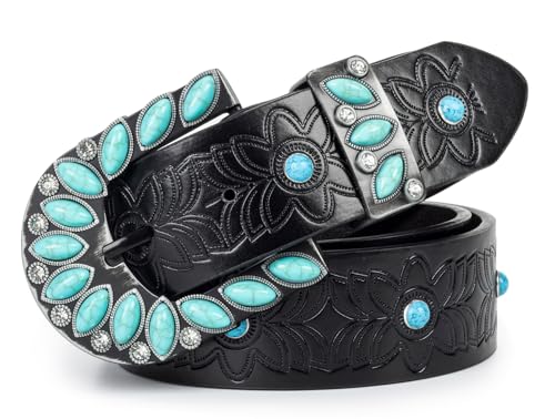 HOT ! Turquoise-Belt Western-Cowboy-Belt for Women - Vintage Floral Cowgirl-Strap with Turquoise-Buckle for 28-38''waist