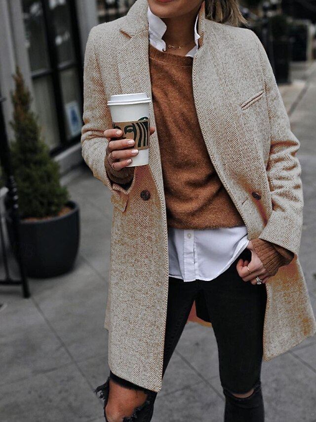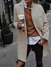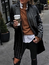More information about Women's Winter Coat Coat Warm Comfortable Pocket Buttons Casual Plaid Vacation Street Casual Daily Wear Long Turndown Regular Fit Long Sleeve Outerwear Black Apricot Fall Winter