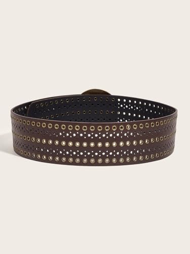 Womens-Western-Wide-Leather-Belt - Vintage Punk Hollow Chunky-Belts for Dresses Large Size 6