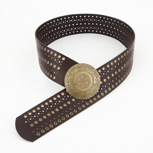 Womens-Western-Wide-Leather-Belt - Vintage Punk Hollow Chunky-Belts for Dresses Large Size 7