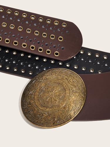 Womens-Western-Wide-Leather-Belt - Vintage Punk Hollow Chunky-Belts for Dresses Large Size 3