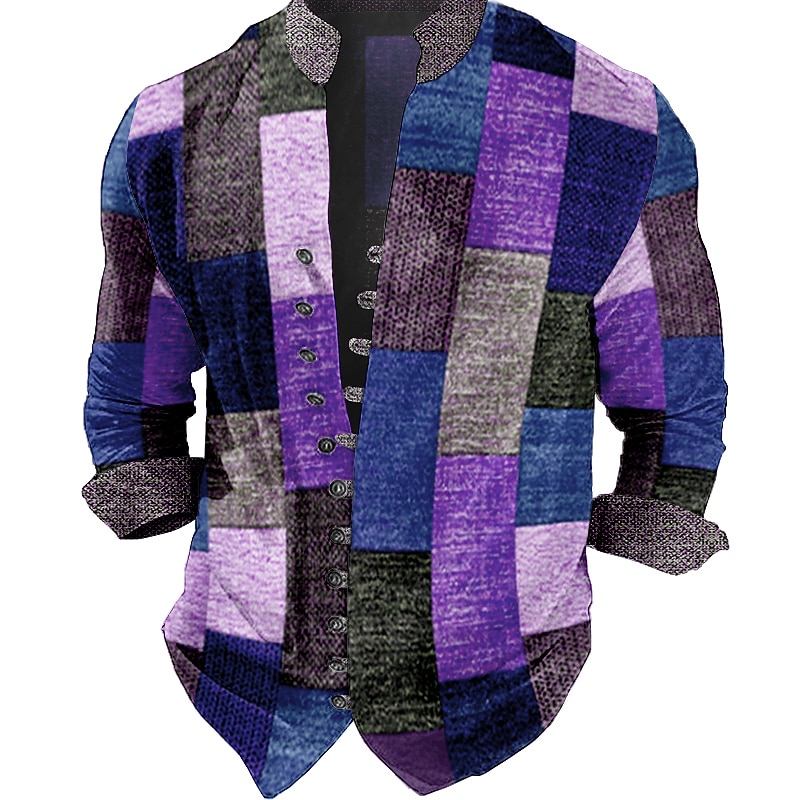 More information about Men's Plaid / Check Geometric Pattern Geometry Shirt Button Up Shirt Long Sleeve Fashion Streetwear Designer Outdoor Casual Daily Summer Spring Fall Stand Collar Print Light Green Red Blue Purple