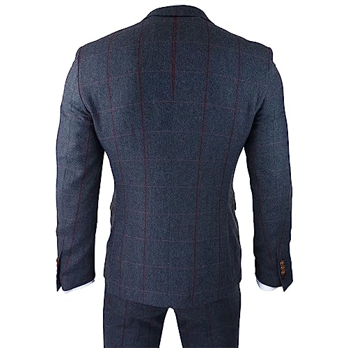 Mens Herringbone Tweed 3 Piece Navy Red Check Suit Vintage 1920s Tailored Fit 3