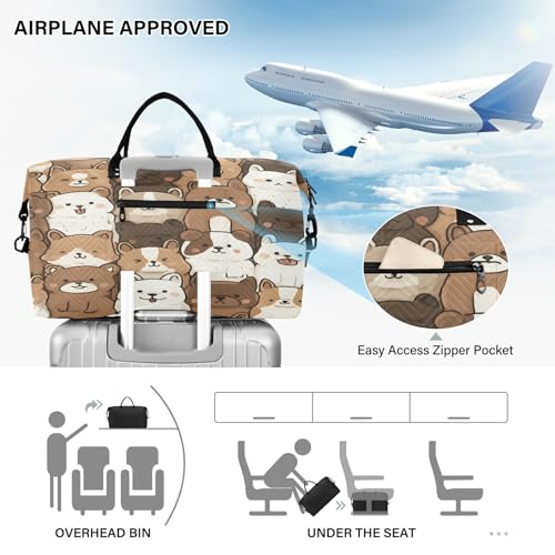 HOT ! Travel Duffle Bag Weekender Bags Overnight Bag with Toiletry Bag Gym Duffel Bag Cute Puppy Line for Travel Business Trips Sport