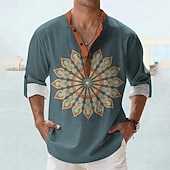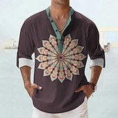 More information about Men's Shirt Button Up Shirt Long Sleeve Tribal Fashion Casual Vacation Causal Casual Summer Spring & Fall Stand Collar Buttons Print Black Purple Green