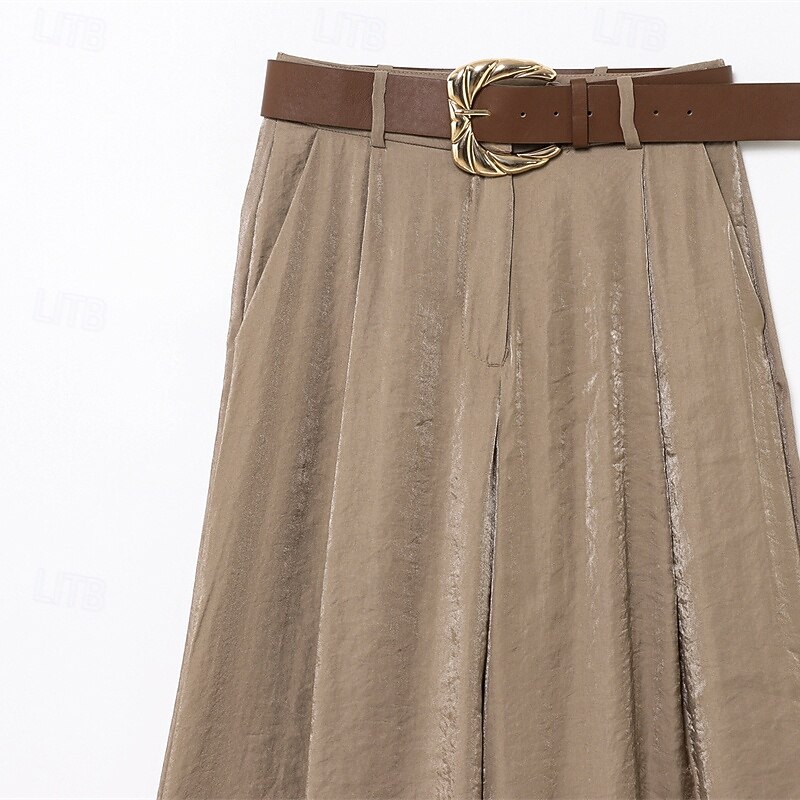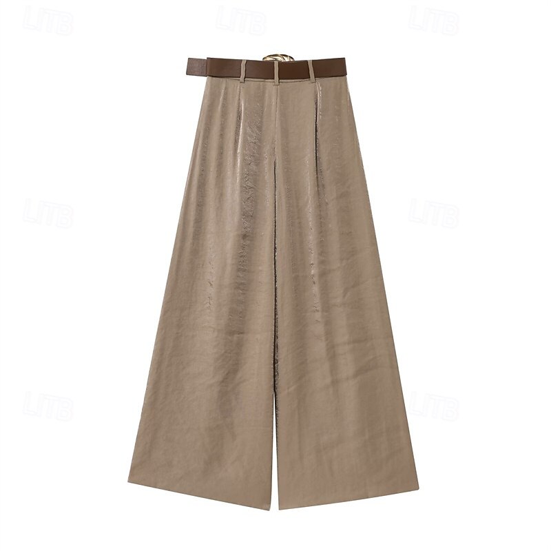 More information about Women's Wide Leg Pants Trousers Palazzo Pants Fashion Streetwear Full Length High Waist Plain Breathability Comfortable Street Daily Wear Going out Yellow Khaki Spring Fall Regular Fit