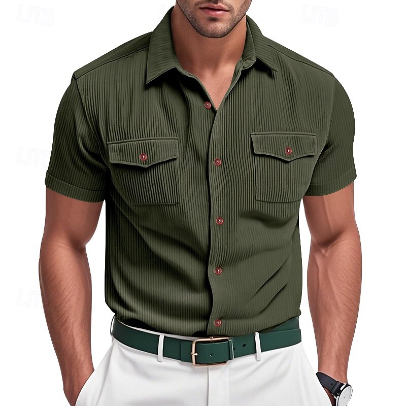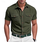 More information about Men's Shirt Summer Shirt Casual Shirt Beach Shirt Button Up Shirt Black White Yellow Navy Blue Brown Short Sleeve Plain Lapel Vacation Hawaiian Front Pocket Clothing Apparel Polyester Fashion Casual