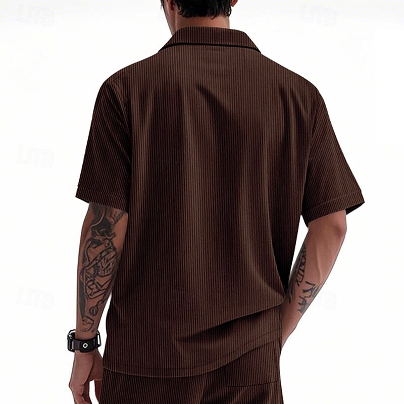 HOT ! Men's Shirt Summer Shirt Casual Shirt Beach Shirt Button Up Shirt Black White Yellow Navy Blue Brown Short Sleeve Plain Lapel Vacation Hawaiian Front Pocket Clothing Apparel Polyester Fashion Casual