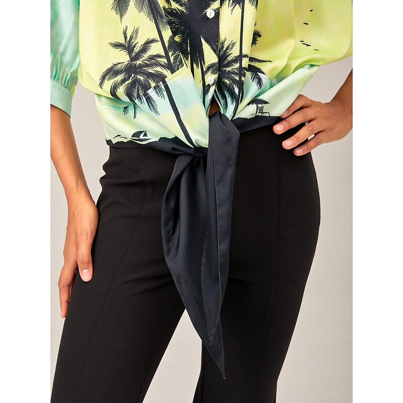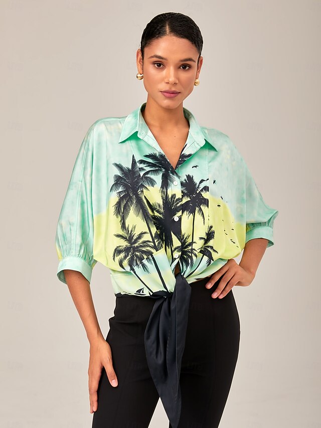 More information about Gradient Background Palm Tree Tie-Front Top Casual Vacation Style