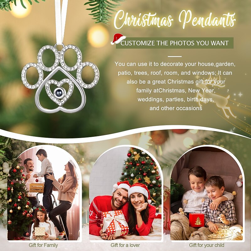 Personalized Christmas Photo Dog Paw Projection Ornament Custom Picture Memorial Gift Charm Xmas Tree Hanging Decor, Christmas Gift for Her/Him/Family 1