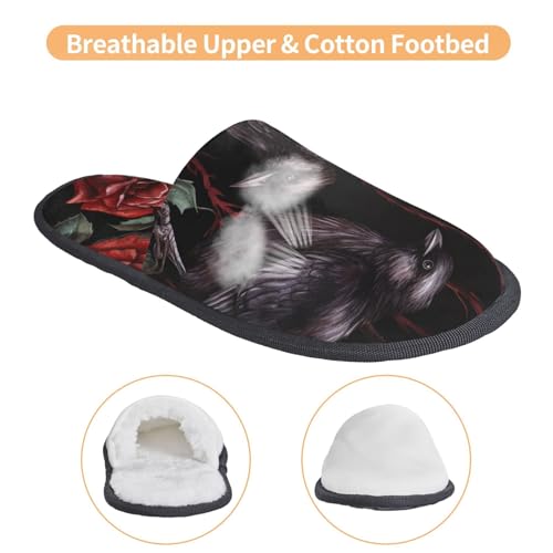 HOT ! Halloween Red Rose Slippers for Women, Black Crow House Slippers Non-slip Indoor Bedroom Slippers Warm Cozy Memory Foam Home Shoes