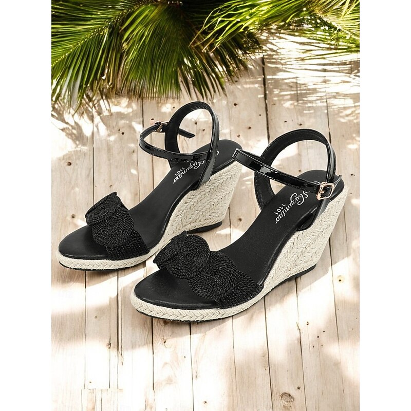 Women's Black Wedge Sandals – Stylish Espadrille Platform Sandals , Perfect for Summer, Beach, and Casual Wear 19