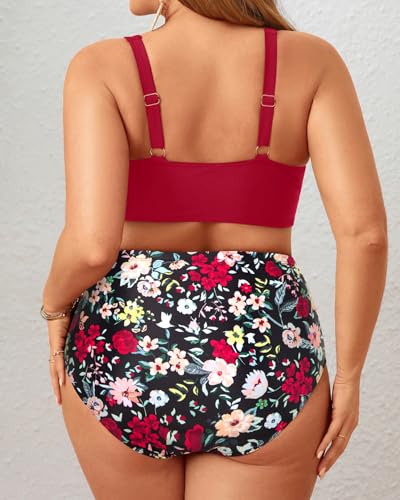 • Red Floral High Waisted 2 Piece Bathing Suit: This swimwear with adjustable straps and pads showcases of your long torso while providing you with more freedom.Perfect for suitable for ladies, teens and girls.